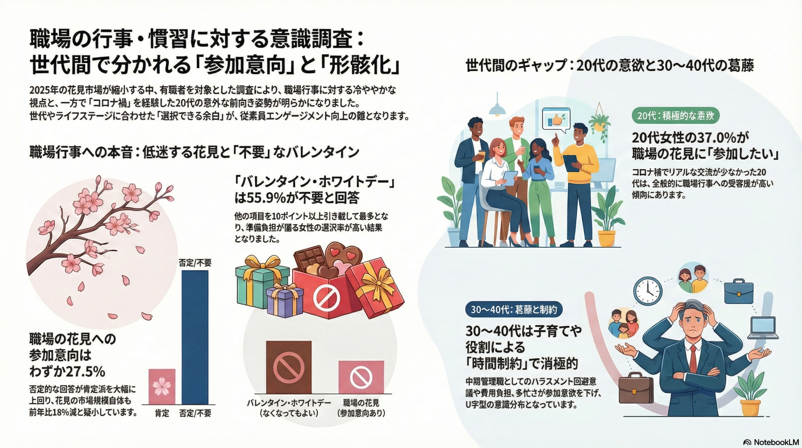 【今日のファクト】 職場の花見に前向きなのは20代女性が最多の37%で、バ…